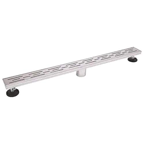 - aprox size: 36" L x 3.5 W" x 2.0" Pipe Diameter Linear drain models are ideal for side placement, single direction sloped floors Levelers help to make the installation process simple Drain comes with a hook to lift the grate and basket strainer for easy cleaning Drain bodies have sloped channels for facilitating proper water drainage Stainless steel 304 construction for long-term product life Meets ADA requirements for handicap shower entry Code Approvals: ASME A 112.18.2-2011/CSA B125.2-11/cUPC